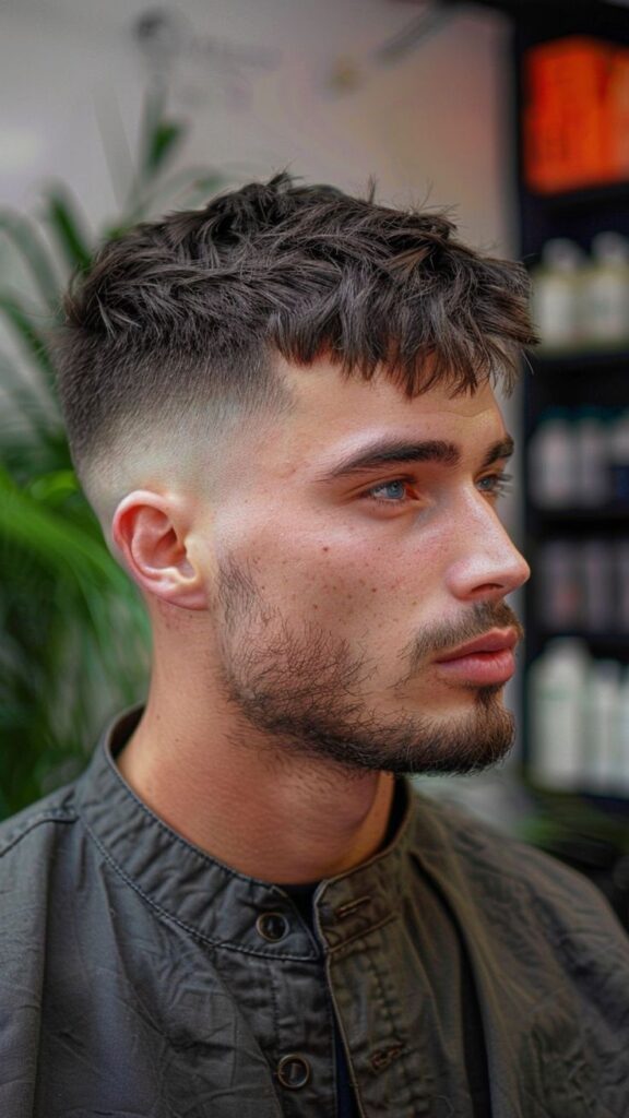 The Classic French Crop is a great choice for those seeking a straight and simple haircut. With a neat fade or undercut, this style offers a clean, fresh look that requires very little effort. It’s perfect for those who prefer a low-maintenance look but still want to appear polished and stylish.If you’re someone who wants minimal styling but still desires a well-groomed appearance, the short textured top of the Classic French Crop fits the bill. The fade adds an extra touch of sharpness to this simple yet effective hairstyle, ensuring you look great without spending too much time on your hair.